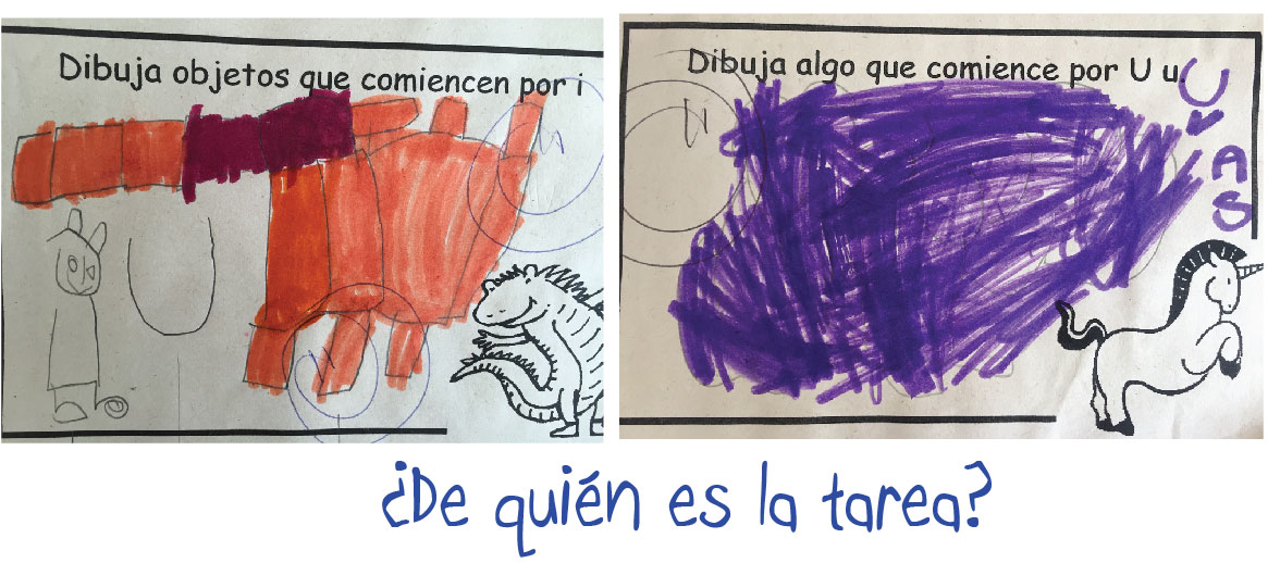 Con mis hijos ha sido un gran reto (PARA MI), entender que son sus tareas y no las mías. Al comienzo los acompaño y les indico que deben hacer (como para ayudarlos a establecer la rutina de las tareas), pero luego ellos deben ser responsables y hacerlas solos.