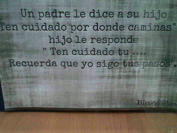 En un libro que estoy leyendo, hay un parrafo muy cierto que ilustra esto: «No he conocido hasta el día de hoy un padre o una madre que no esté genuinamente interesado en inculcar valores a sus hijos, todos lo estamos, pero a menudo olvidamos que los hijos aprenden los valores de lo que los padres SOMOS, no de lo que DECIMOS. De manera que eso que quieres que tu hijo SEA, DEBES SERLO tú primero. Si quieres que tu hijo sea honesto, tú sé honesto; si quieres que tu hijo cuide su salud, tú cuida la tuya; si quieres que tu hijo sea compasivo, tú se compasivo; si quieres que tu hijo sea generoso, tú sé generoso.» (Tu hijo, Tu espejo, de Martha Alicia Chavez)